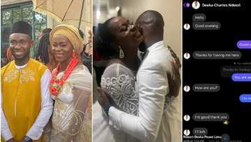 "Oga get lines o": Bride leaks chat with husband as they tie the knot few months after meeting on Facebook