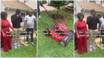 "I thought it was a car": Video shows moment parents presented mowing machine as 18th birthday gift to son