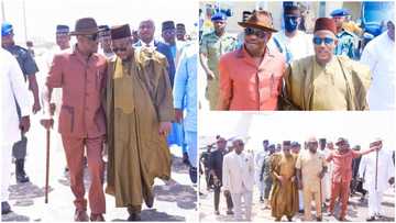 Rare photos of PDP's G-5 governors led by WIke seen dancing in traditional attire emerge