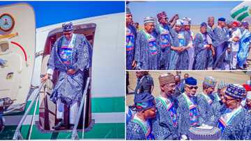Breaking: Photos emerge as Buhari, powerful APC governors arrive in Jos for flag-off of Tinubu campaign