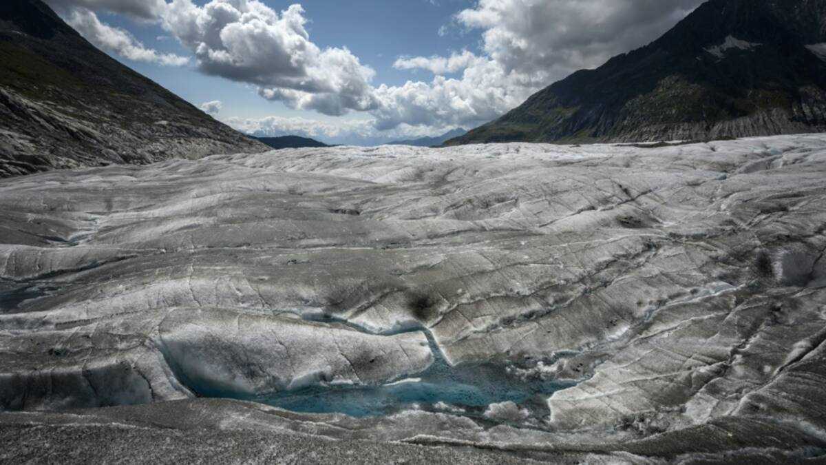 The pieces emerged on the Aletsch Glacier in the southwestern Wallis canton, near the Jungfrau and Monch mountain peaks.