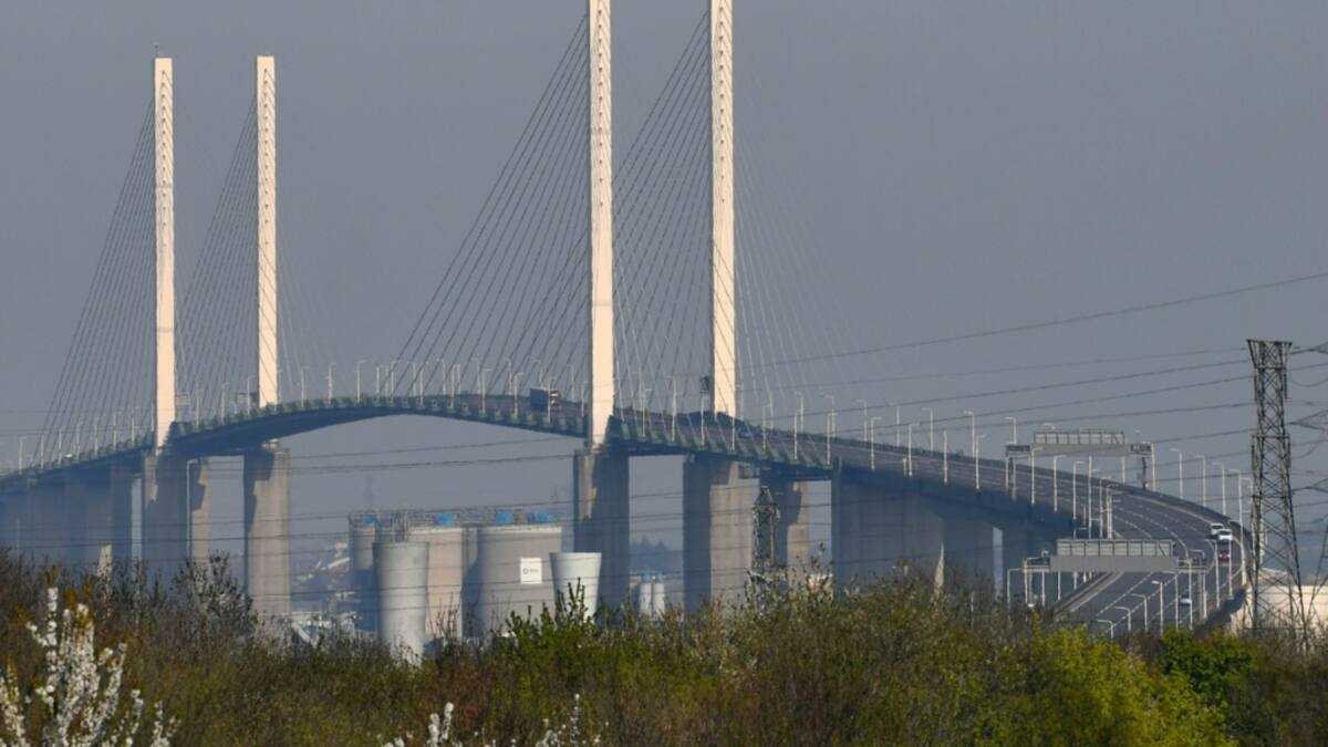The bridge, 30 kilometres (18 miles) east of central London, connects directly at both ends with the M25 London Orbital route.